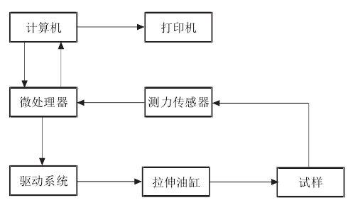 3000 kN拉力試驗機系統是一個(gè)閉環控制(zhì)系統,其工作(zuò)程序是由計(jì)算(suàn)機通(tōng)過用戶設定的數(shù)值傳輸給微處理(lǐ)器(qì),經微處理(lǐ)器(qì)将輸入的數(shù)字信号轉變為(wèi)電(diàn)信号傳輸給驅動系統,驅動系統接收電(diàn)信号後控制(zhì)拉伸油缸進行(xíng)試件的拉伸試驗,此時(shí)壓力傳感器(qì)将試件承受的拉力轉變為(wèi)電(diàn)信号保存并上(shàng)傳給微處理(lǐ)器(qì),經微處理(lǐ)器(qì)将接收的電(diàn)信号轉變為(wèi)數(shù)字信号上(shàng)傳給計(jì)算(suàn)機,計(jì)算(suàn)機接收微處理(lǐ)器(qì)上(shàng)傳的反饋信息後,經計(jì)算(suàn)機軟件處理(lǐ)轉變為(wèi)線性表格存儲并由打印機輸出。3000 kN拉力試驗機系統工作(zuò)程序如圖所示。