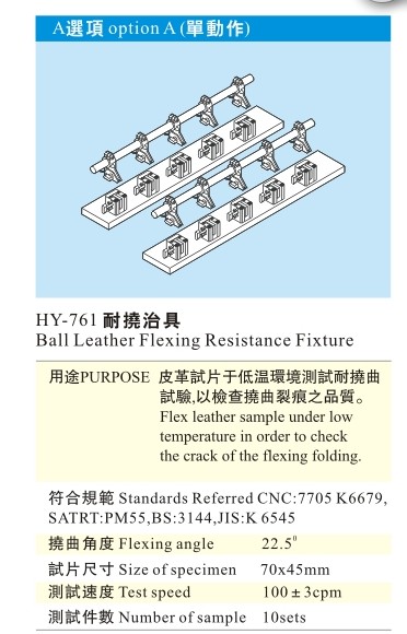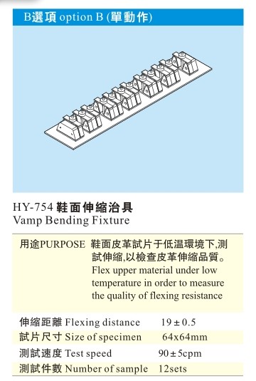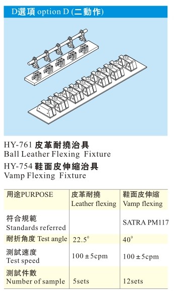 4.選配內(nèi)箱動作(zuò): A.鞋面材料低(dī)溫屈撓夾具:1.組數(shù):6隻